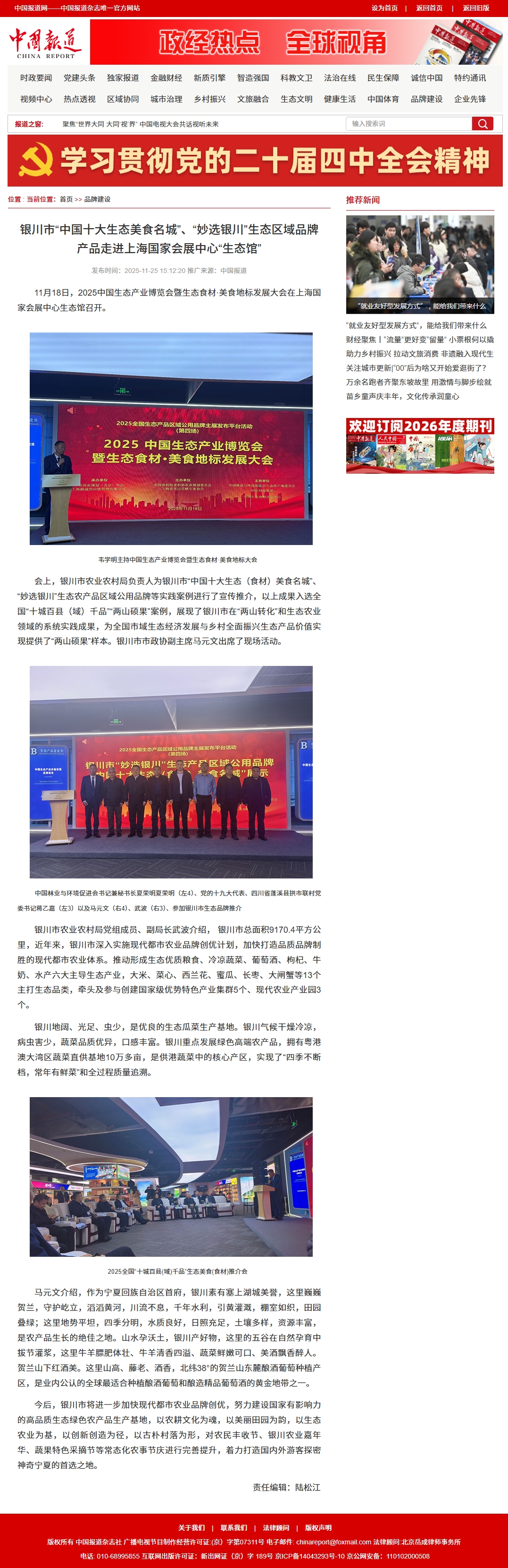 大会由中共上海市突出贡献专家协会党工组成员、专职副秘书长韦学明主持,本次大会也是自2018年以来延续召开的第八届中国生态(地标)产业博览会,会上,银川市农业农村局副局长武波为银川市“中国十大生态(食材)美食名城”、“妙选银川”生态农产品区域公用品牌等实践案例进行了宣传推介。河南省辉县市人民政府获评“中国生态山楂之都”生态产品区域品牌,冠县人民政府获评“中国生态酥梨名县”,蒙城县牛肉、果蔬系列生态产品与六安市木本油料协会生态茶油同期获评“中国生态原产地保护产品”品牌,标志着乡村全面振兴“百县千品”生态工程在推动生态产品价值实现方面迈入系统化、品牌化新阶段。