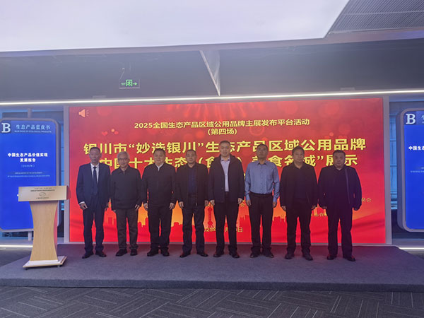 夏荣明(左4)、马元文(右4)、武波(右3)、蒋乙嘉(左3)参加银川市生态品牌推介